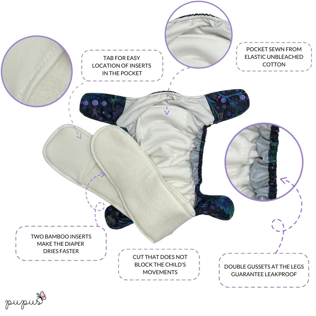 It provides fast changes, strong absorbency and soft, breathable materials sourced in Poland. The nappy stays comfortable and durable even after frequent washing.