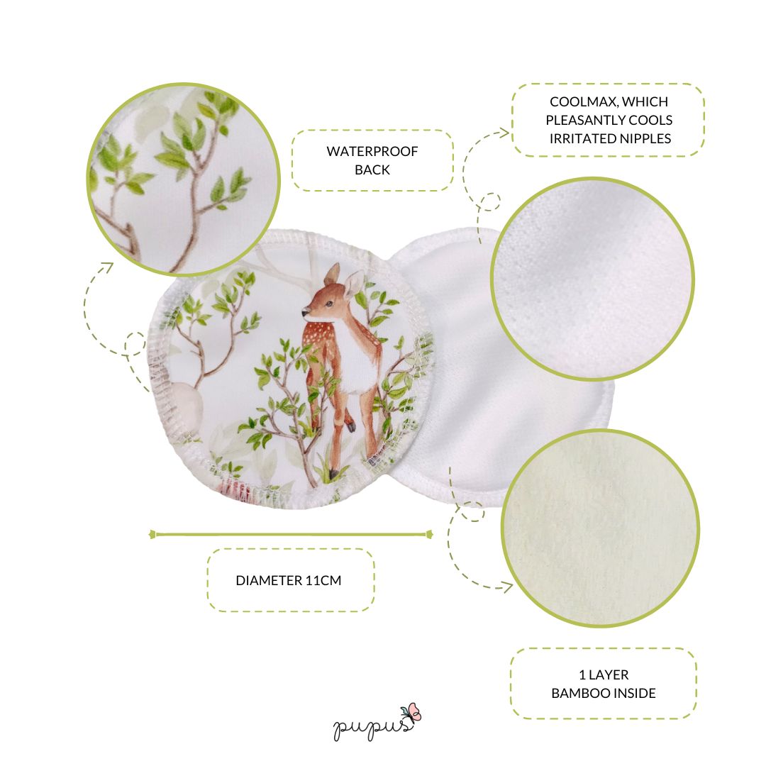 Sewn in Poland (in Olsztyn :) reusable breast pads with very absorbent bamboo and delicate coolmax to cool down your sore nipples.