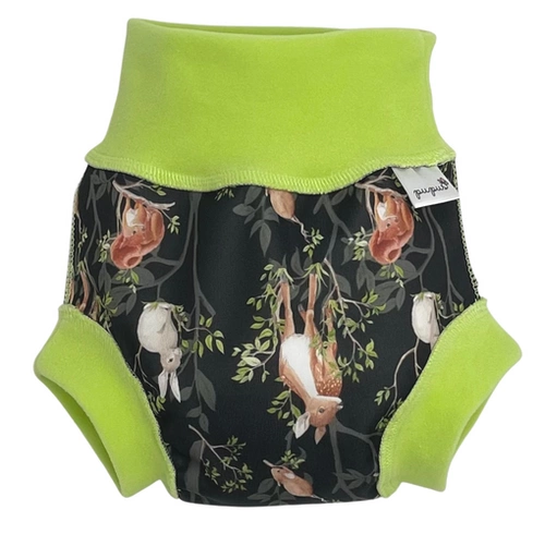 Unsere Schlupfüberhosen bestehen aus weichem, flexiblem PUL und zweilagigen Fleece-Streifen.