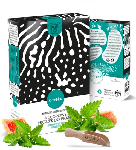 - Rewelacyjnie dbający o kolory proszek do prania klareko.