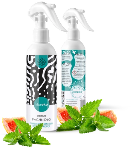 Pachnidło KLAREKO zawiera w sobie: woda, alkohol izopropylowy, wodorowęglan sodu, naturalne olejki