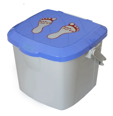 Szczelny pojemnik na zużyte pieluszki o pojemności 15,5 litra - biały, nieprzeźroczysty z fioletową pokrywką.