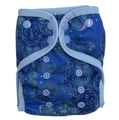 Aceste huse de mărime unică se potrivesc copiilor de la 7 la 16 kilograme. Dimensiunea lor poate fi ajustată cu napsurile din partea din față a scutecului. Puteți utiliza inserțiile noastre obișnuite, un scutec montat sau un terry plat, însă acesta nu va fi foarte absorbant.