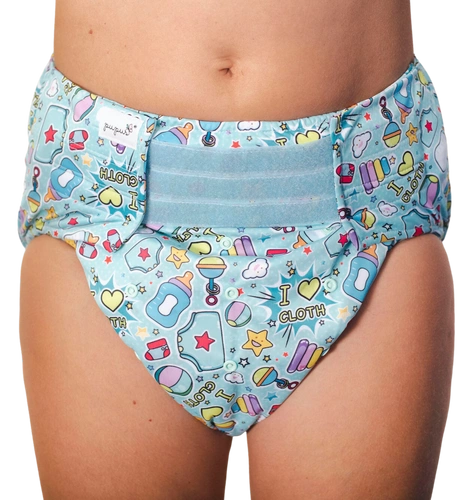 - Scutece de pânză pentru adulți cu un buzunar din microfleece și închidere cu naps. Dimensiunea este reglabilă
