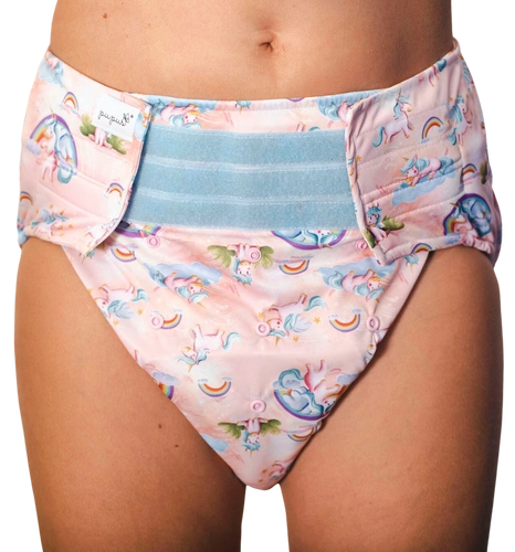 Datorită ajustării largi la talie și lungime, scutecele se potrivesc persoanelor de toate tipurile de corp, atât mici cât și masive.